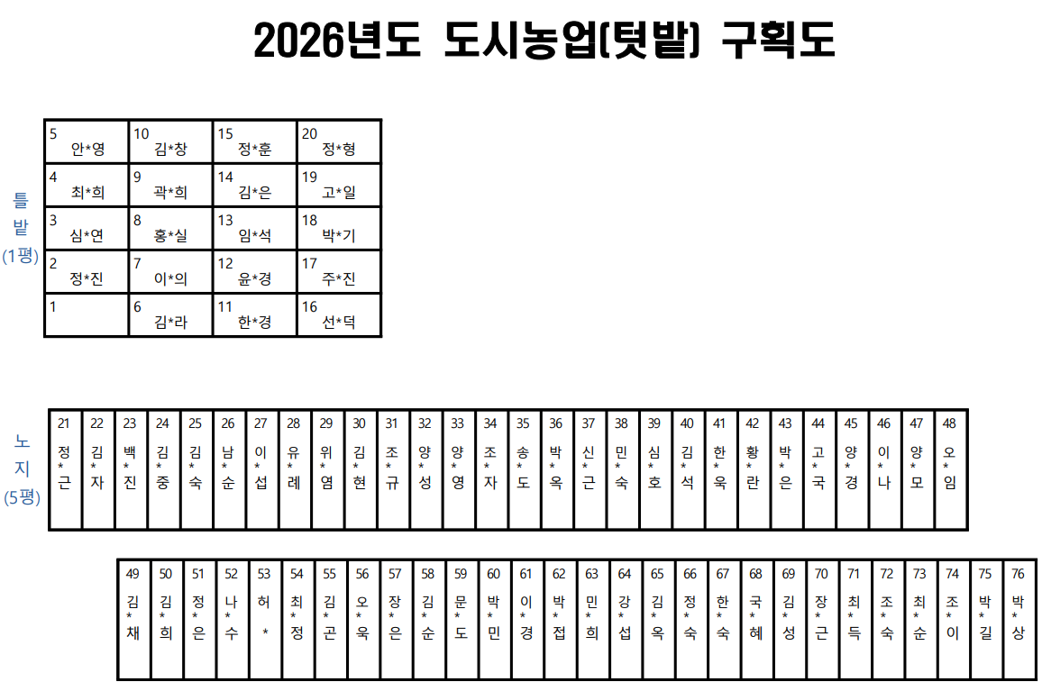 2026년 도시농업(텃밭) 프로그램 텃밭 자리추첨 결과 공지